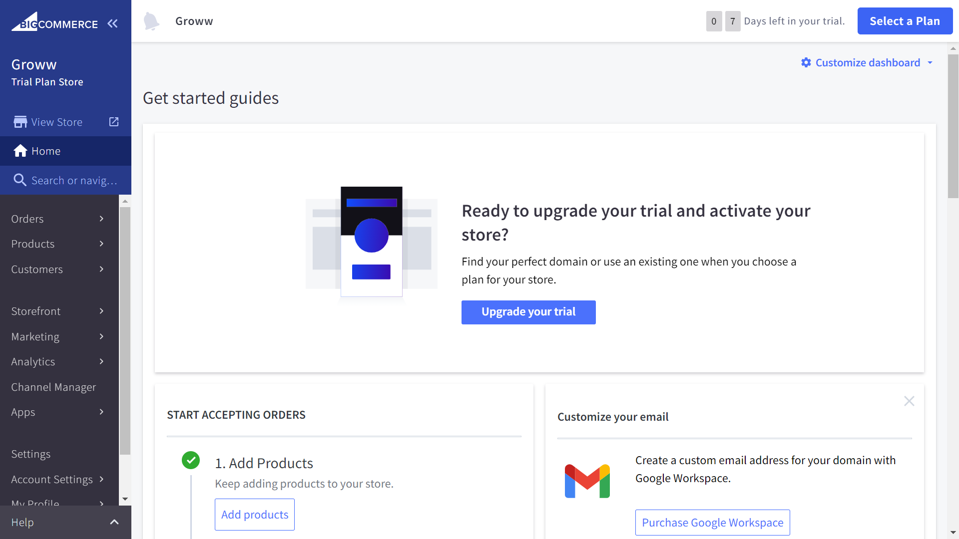 Step 1:- First, if you have your BigCommerce account then sign in and if not create a new account and log into it.