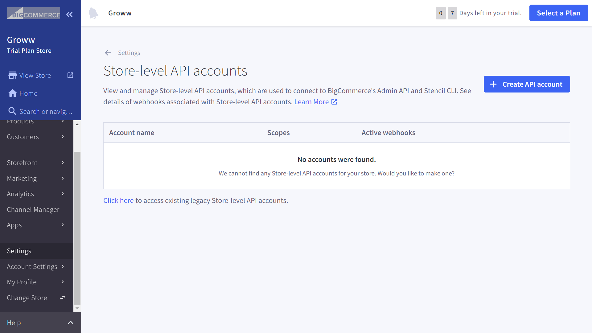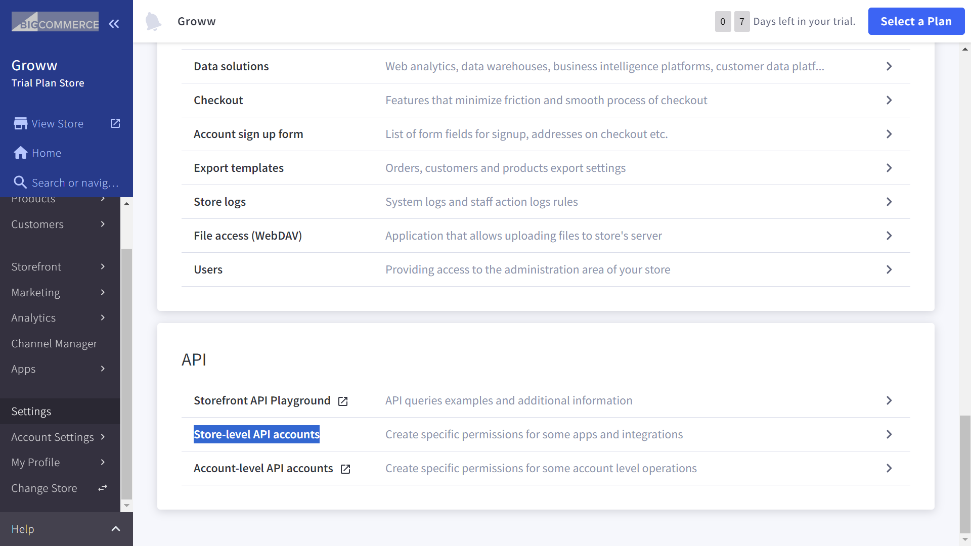 Step 3:- To collect your credentials click on Setting. After that, you have to click on Store-level API accounts in the API section.