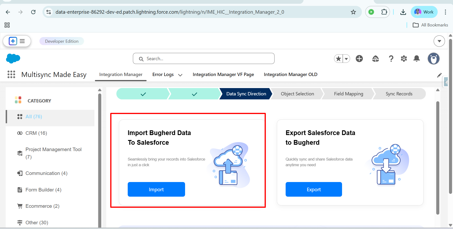 Step 5:- Login the Salesforce and goto the Multisync Made Easy Page and Click on All and Search Bugherd.
