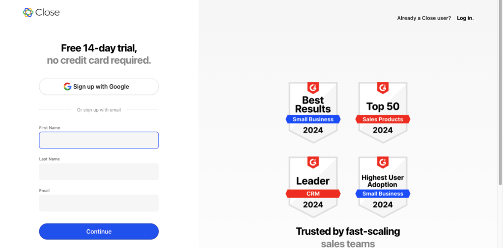 Step 1:- First, sign in to your Close CRM account and If you don’t have one, create a new account from here.