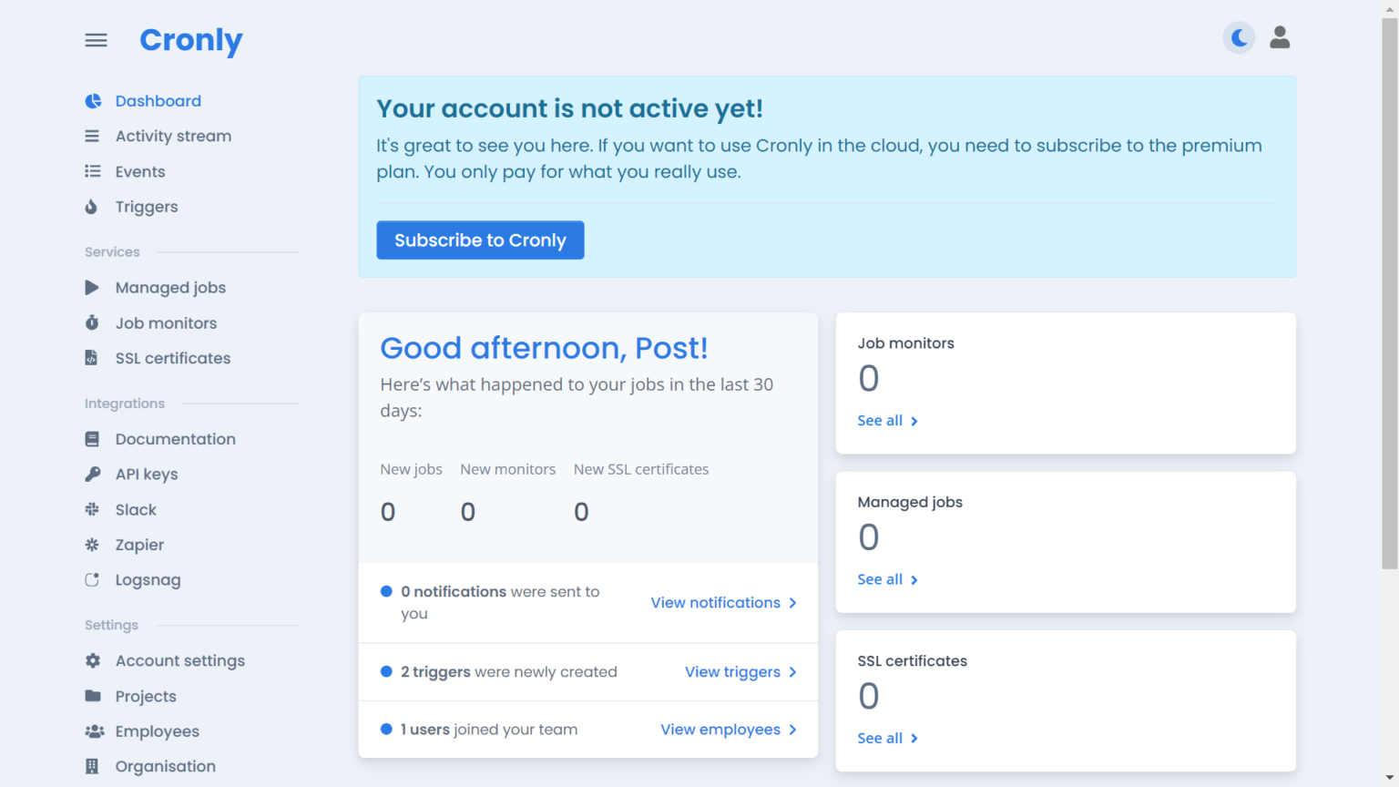 This is our strategic guide to integrating with Cronly. You can explore the app at your convenience, and if you need any further assistance, please contact our Support team.