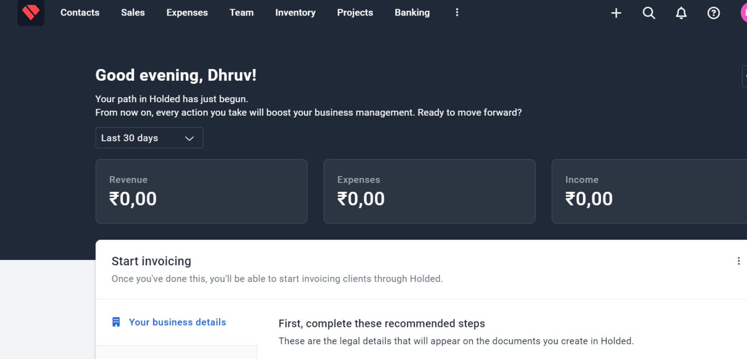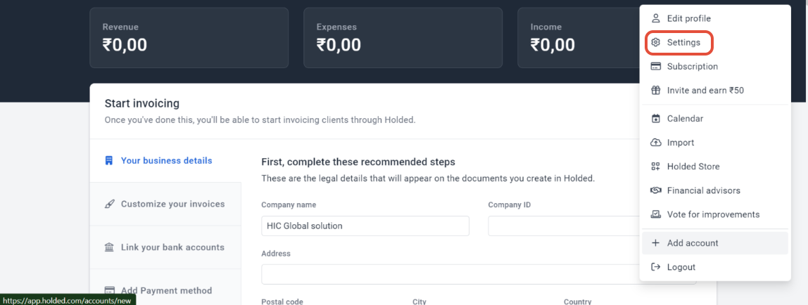 Step 1:- First, sign in to your Holded account and If you don’t have one, create a new account from here.