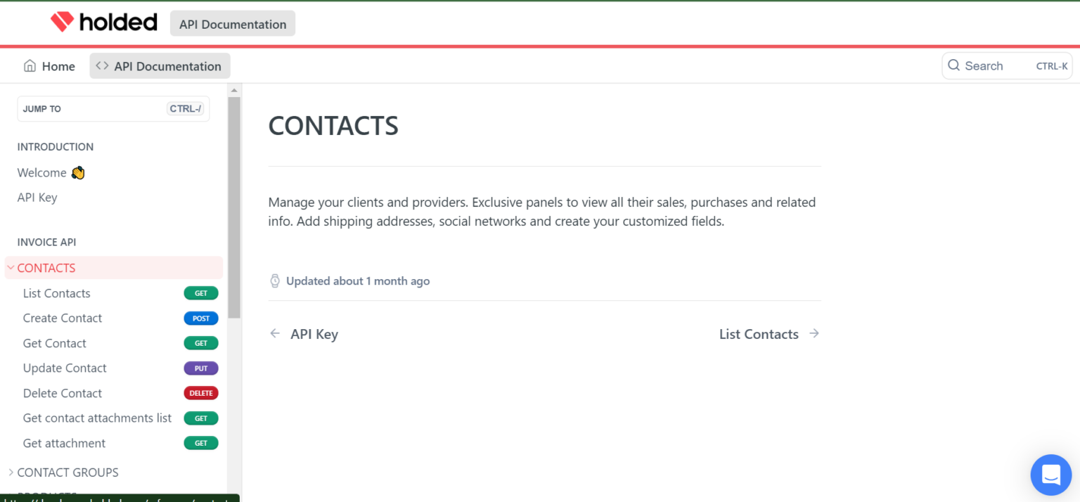 Use the following link to open the Holded API Reference. This resource provides detailed information on all available API endpoints and their usage.