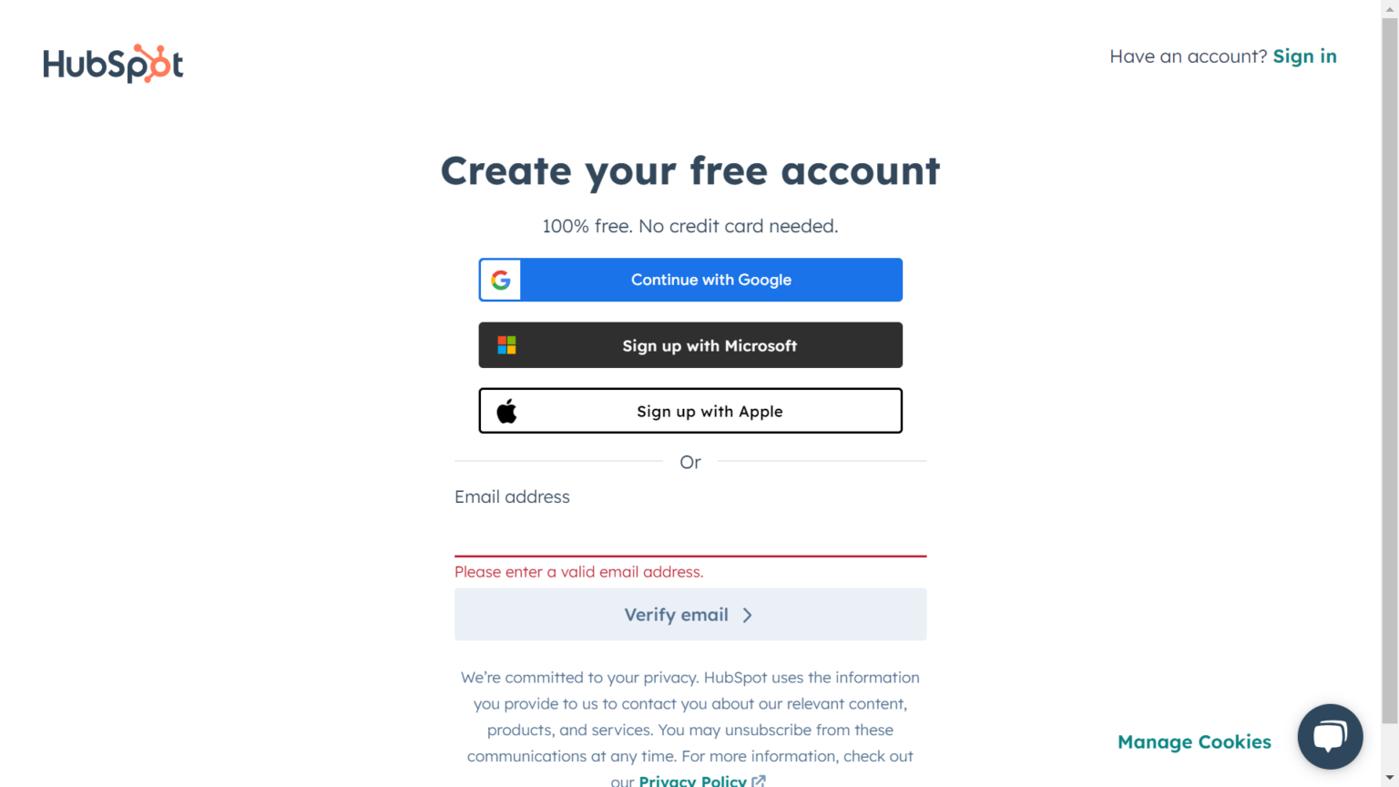 Step 1:- First, sign in to your Hubspot account and If you don’t have one, create a new account here.