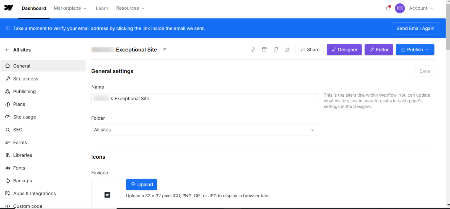 Step 3 :- After clicking on the setting of the Site, your screen will be looking like this.