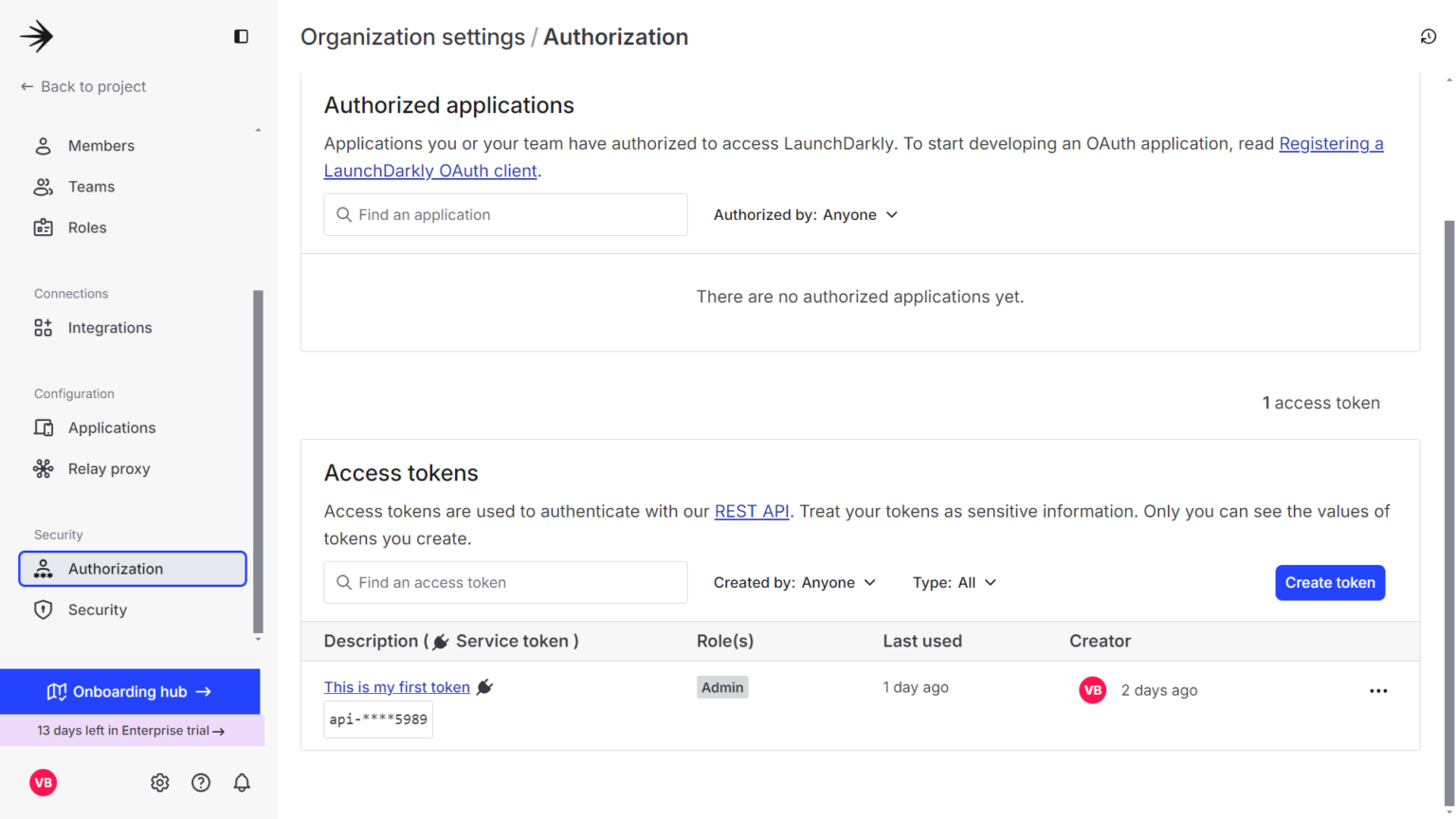 Step 3:- To collect your credentials, go to Authorization > Access Token, then click Create Token.