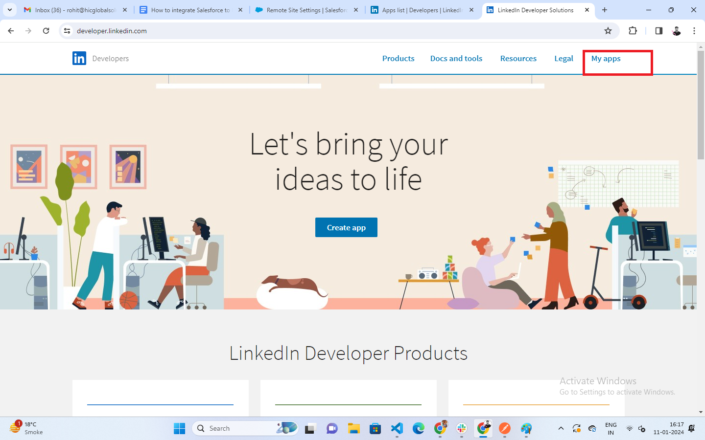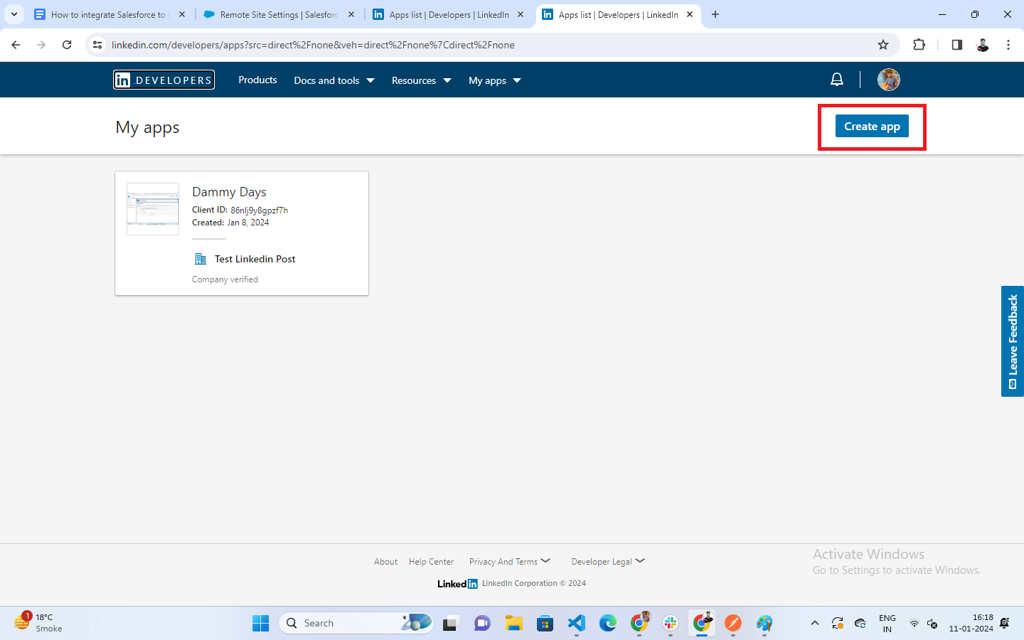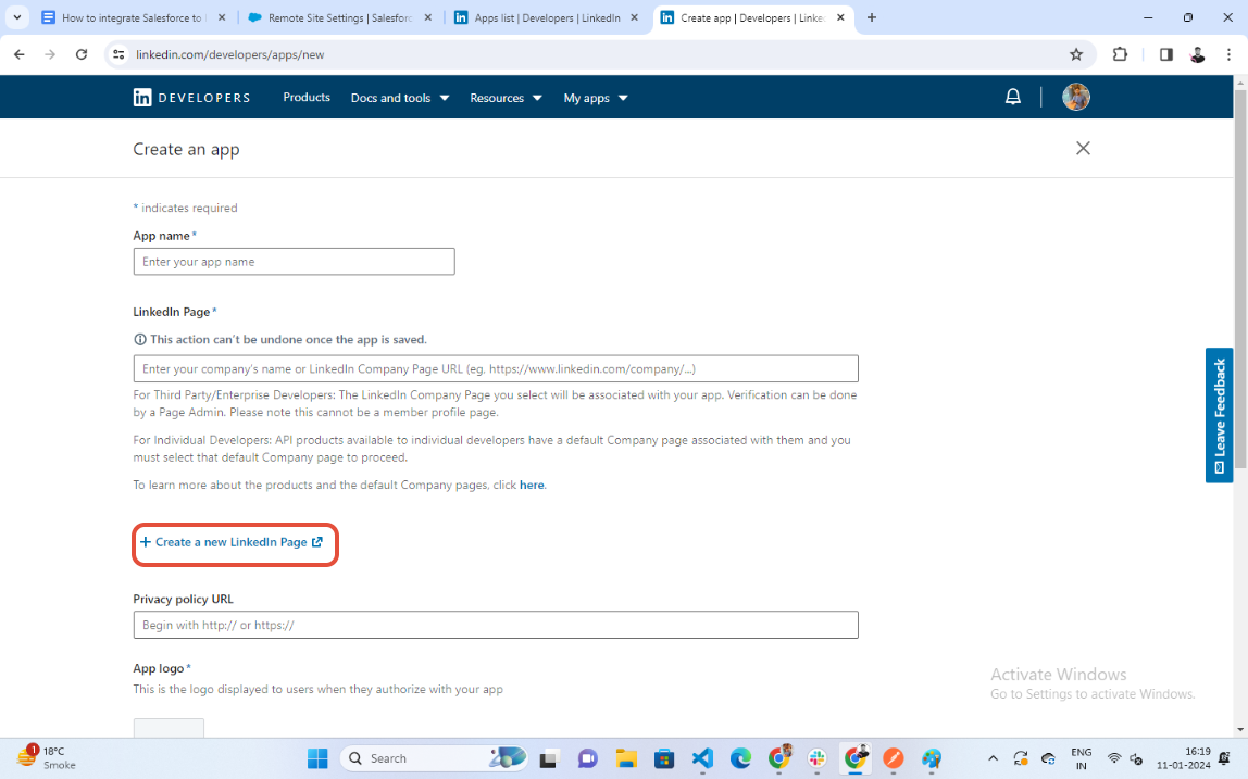 Step 1:- Visit the LinkedIn Developer Portal and create a new app under My Apps.