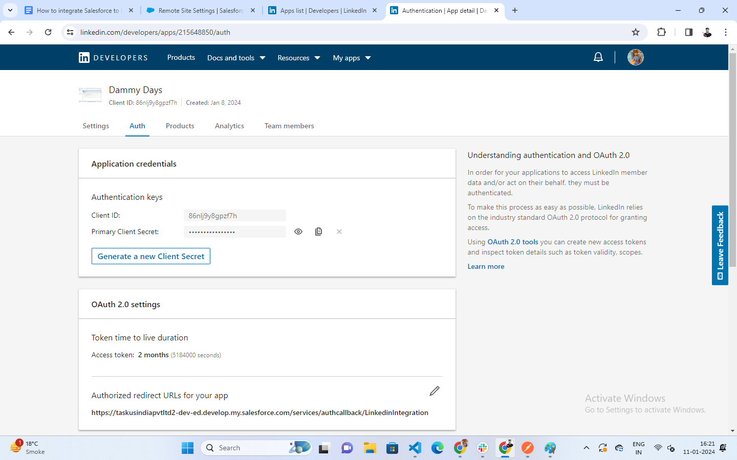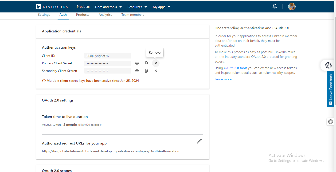 Step 6:- Add the provided redirect URL to your LinkedIn app.