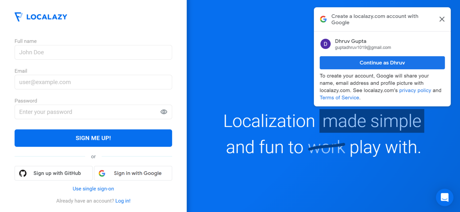 Step 1:- First, sign in to your Localazy account and If you don’t have one, create a new account here.