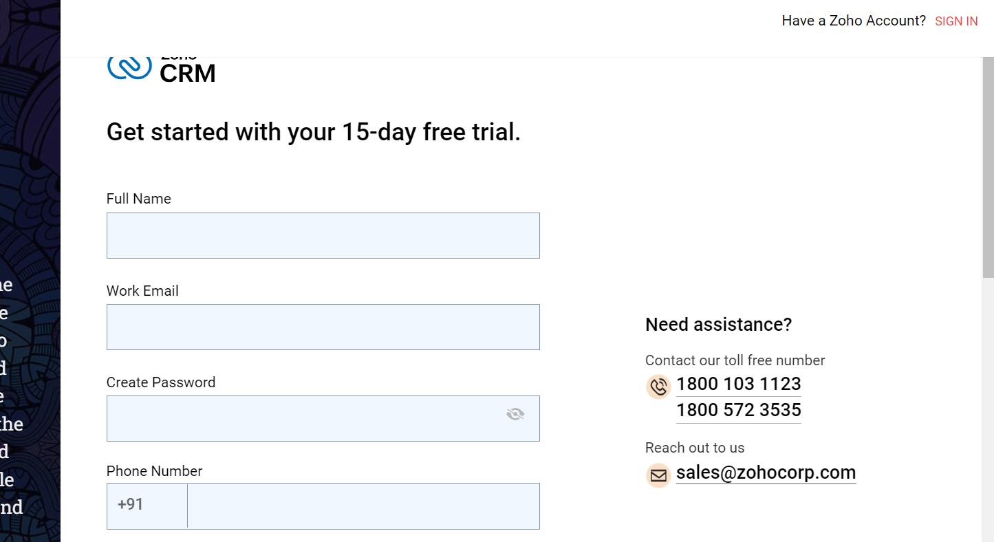 Step 1:- First, if you already have an account, sign in. If not, create a new account for Zoho CRM and Log in.