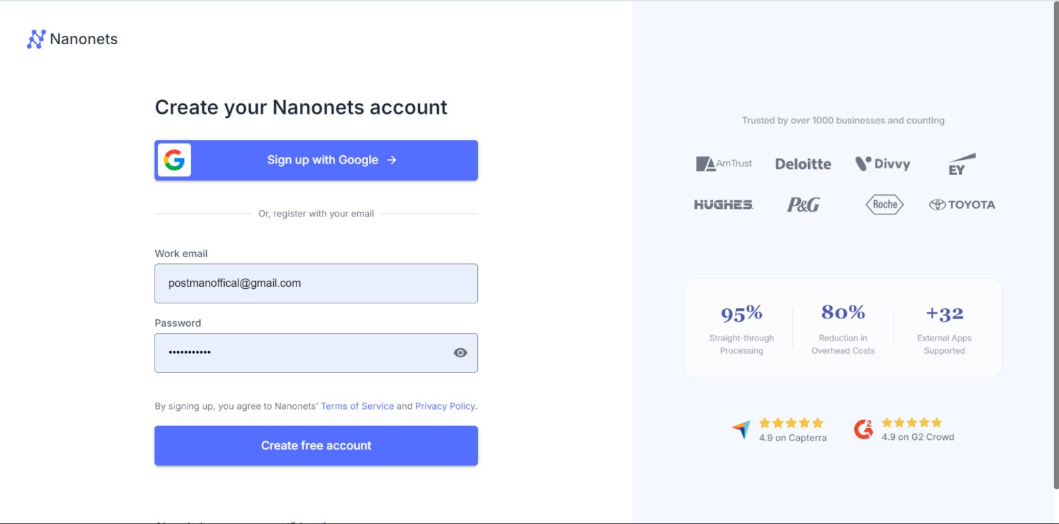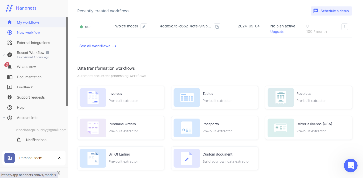 Step 1:- First, sign in to your Nanonets account and If you don’t have one, create a new account from here.