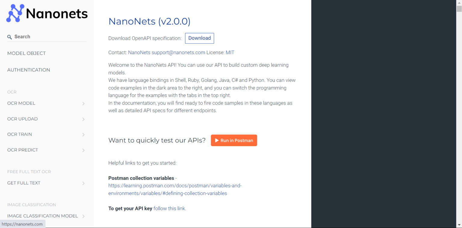 Step 4:- Get the API URL Click here to access the API URL of Nenonets.