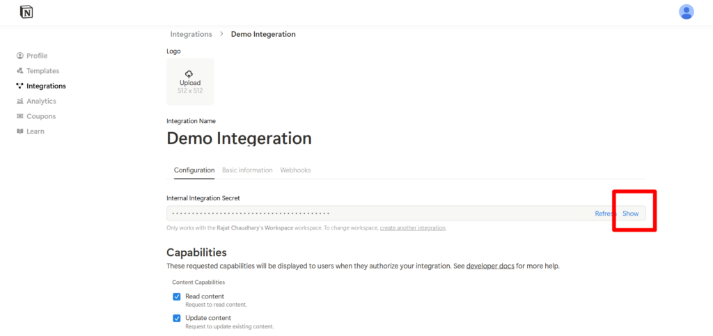 Step 6:- Refer to the API documentation to find all available API URLs: https://developers.notion.com/reference/intro.