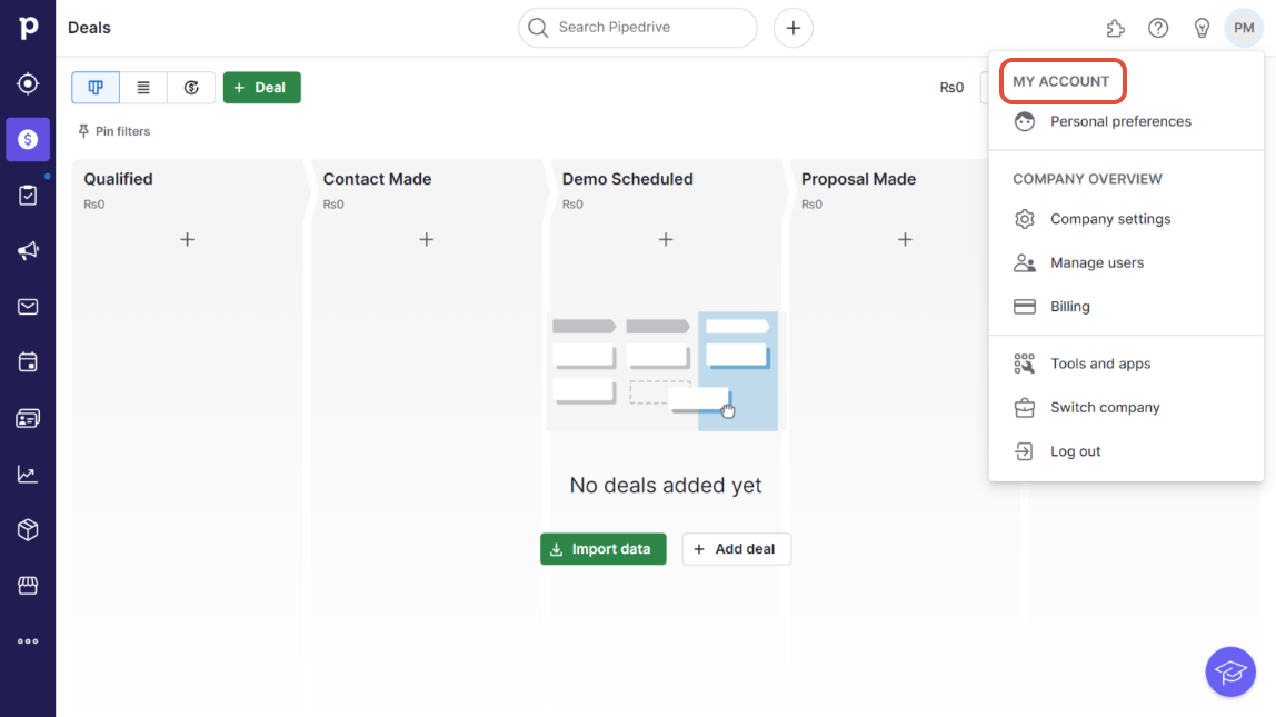 Step 1:- First, sign in to your PipeDrive account and If you don’t have one, create a new account from here.