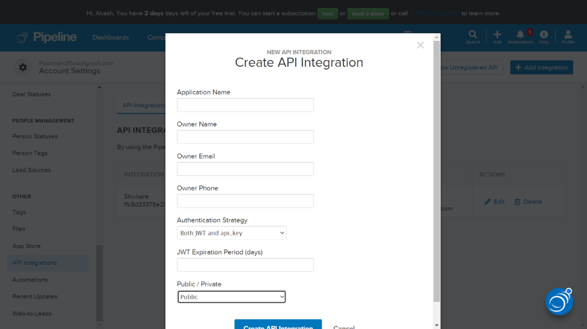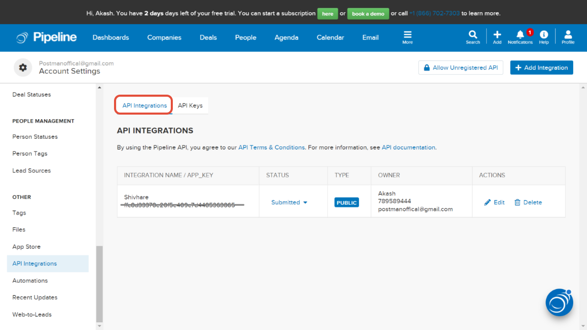 Step 9:- Refer to the Pipeline CRM API documentation to find your API URL: Pipeline CRM API Reference.