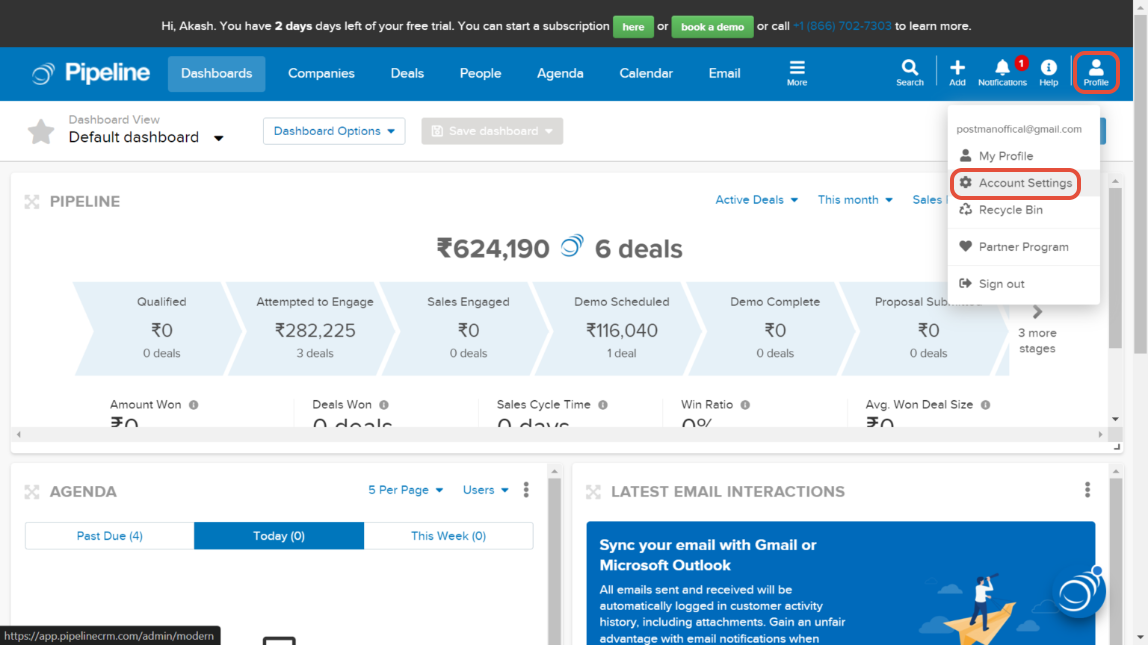 Step 3:- To collect your credentials, click on Profile > Account Settings.