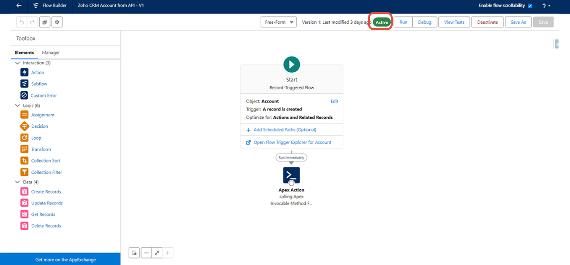 Simply "Activate" the Flow to complete the real-time synchronization setup.
