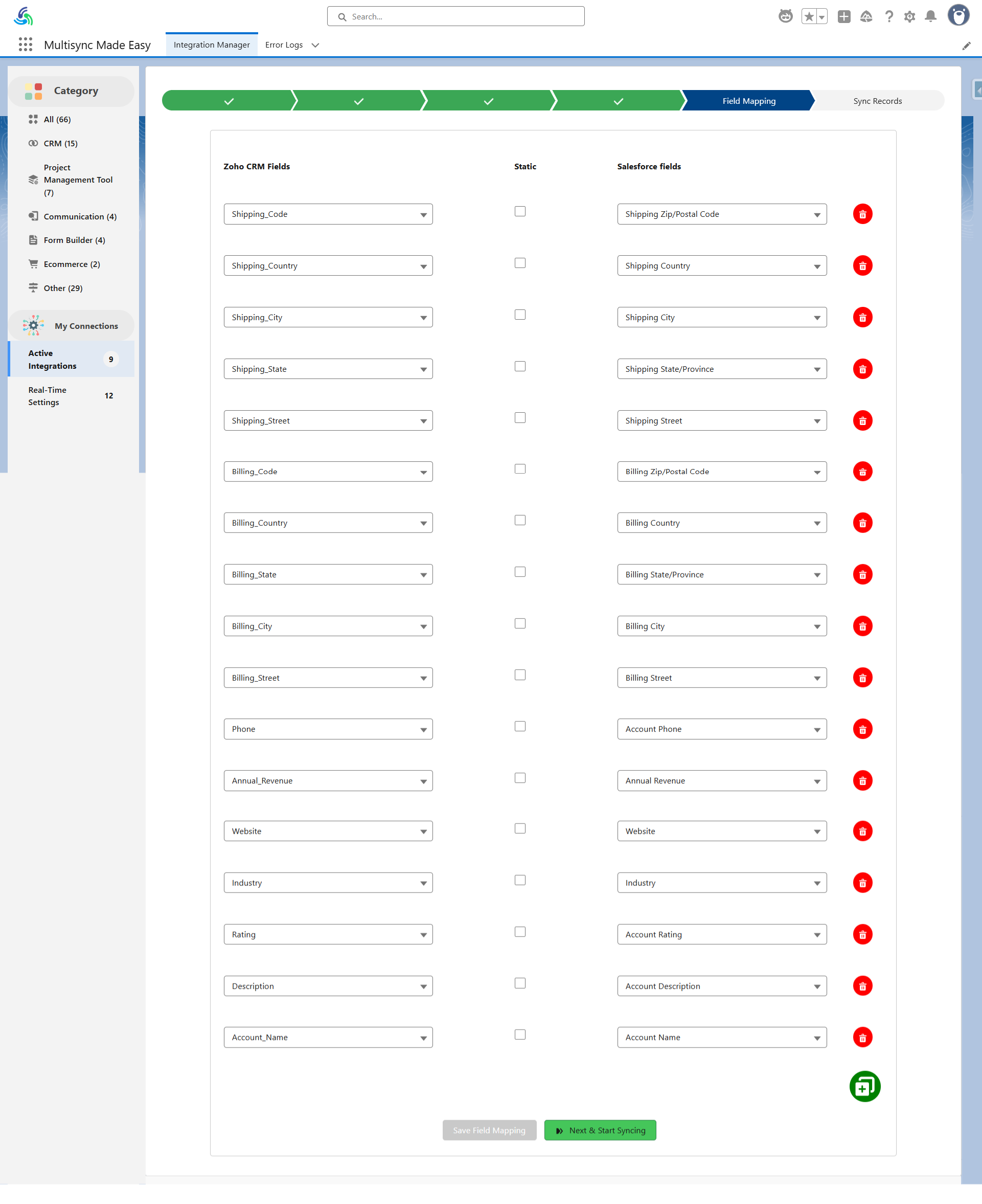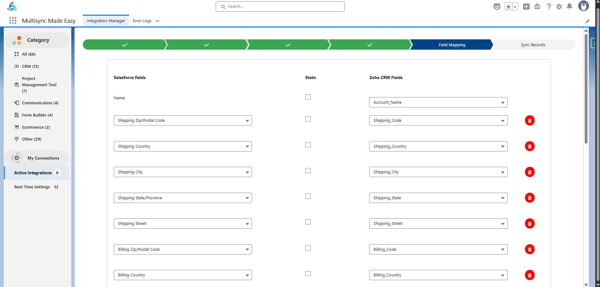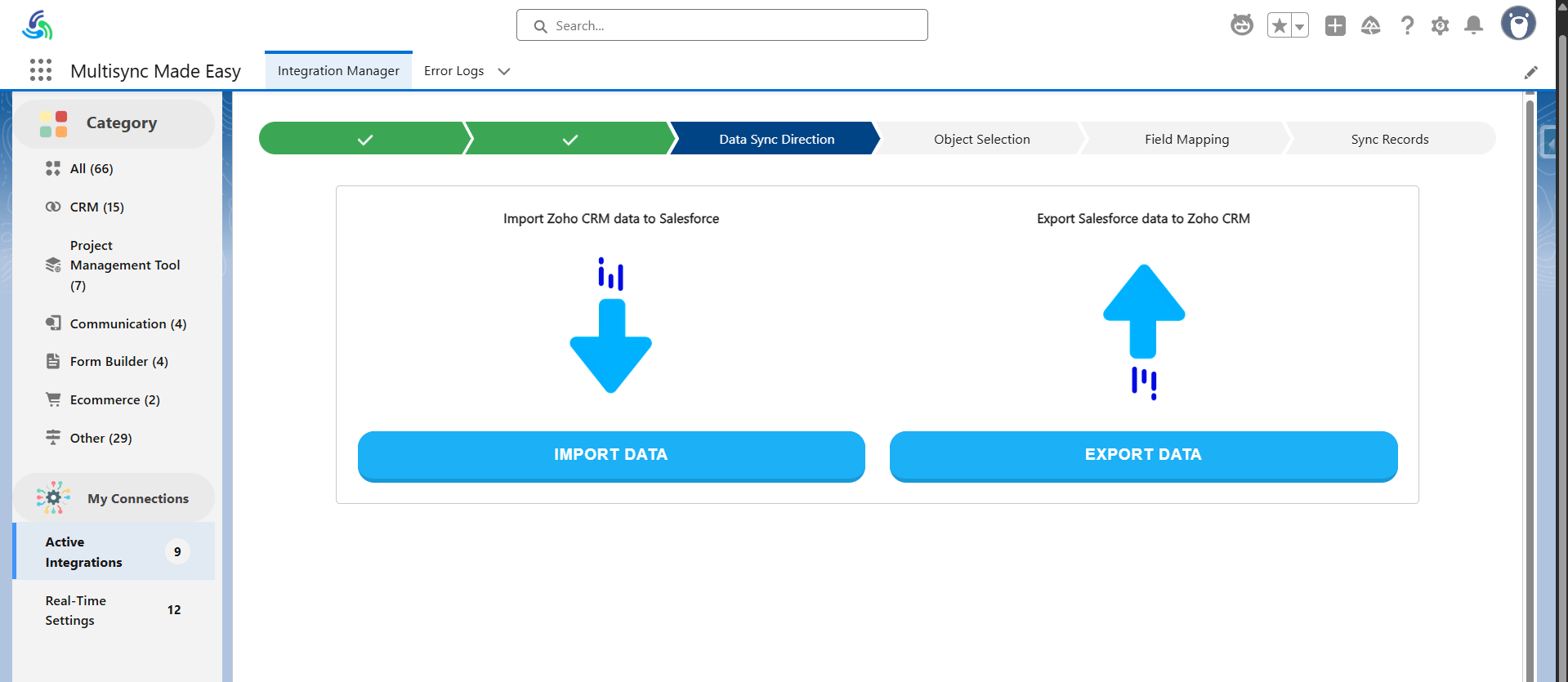 2. Export Data: This feature allows real-time synchronization of data from Salesforce to your connected platforms.