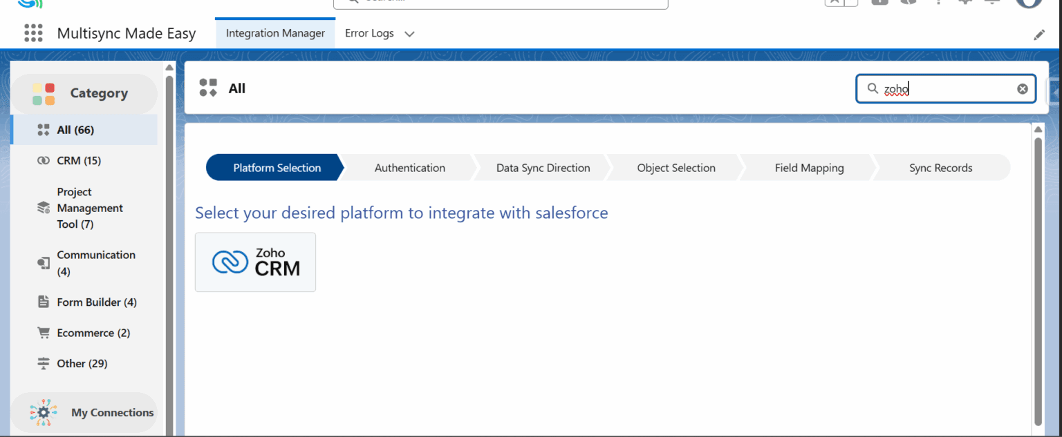 Step 5:- Next, select the platform you want to integrate by clicking the "Search button", and then search for your desired platform.