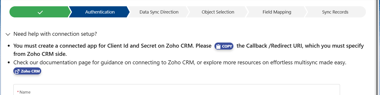The "Copy" button shown in the screenshot allows you to copy your callback URL, which is required primarily when using the OAuth 2.0 Authorization Code method. You can check our documentation to review the key steps involved in integrating your preferred platform with MultiSync Made Easy. To proceed, simply select the checkbox to enable the Next button and move forward to the next step.