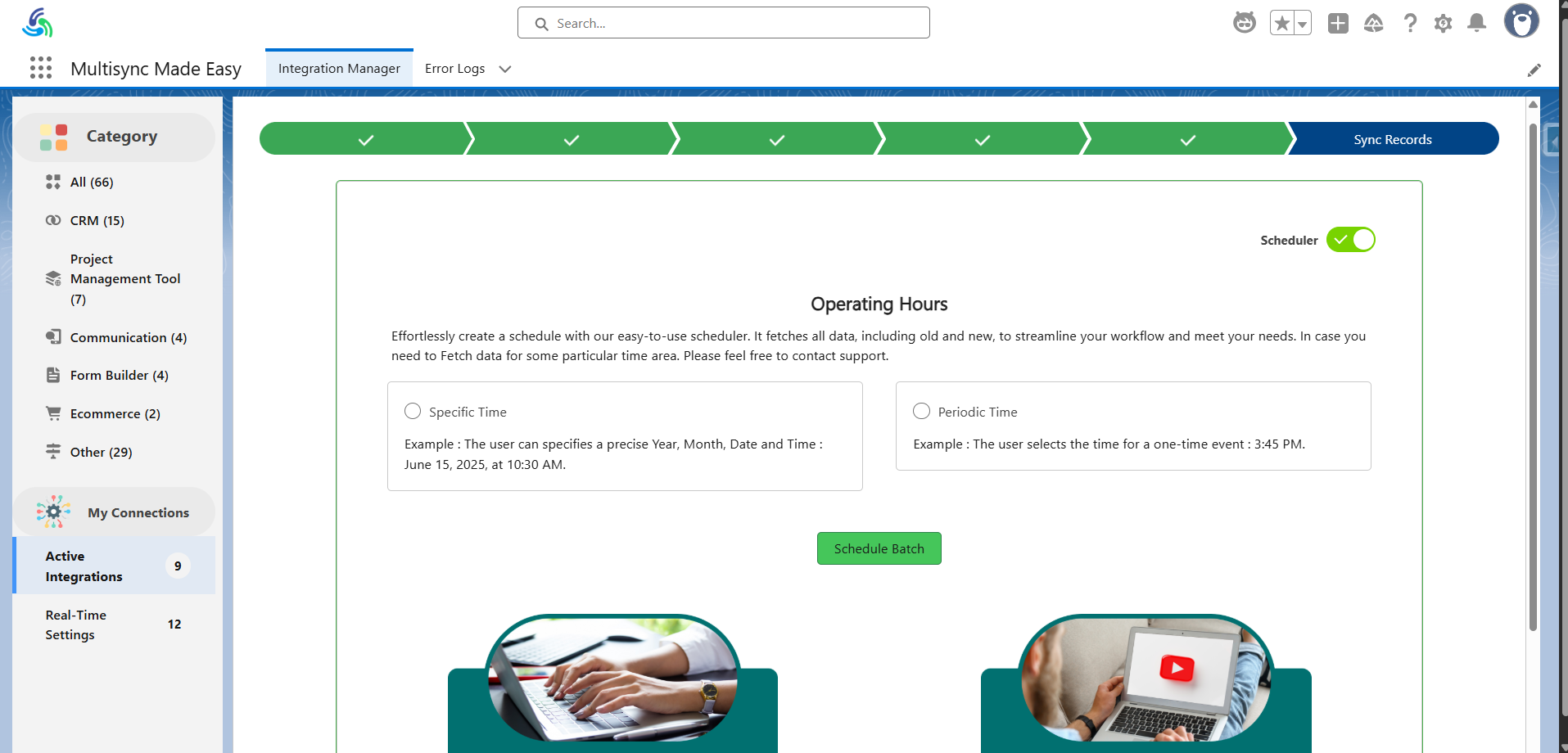 Schedule Data Sync: This feature allows you to schedule when data should be inserted into Salesforce. You can also set up periodic schedules to repeat the synchronization at specific intervals.