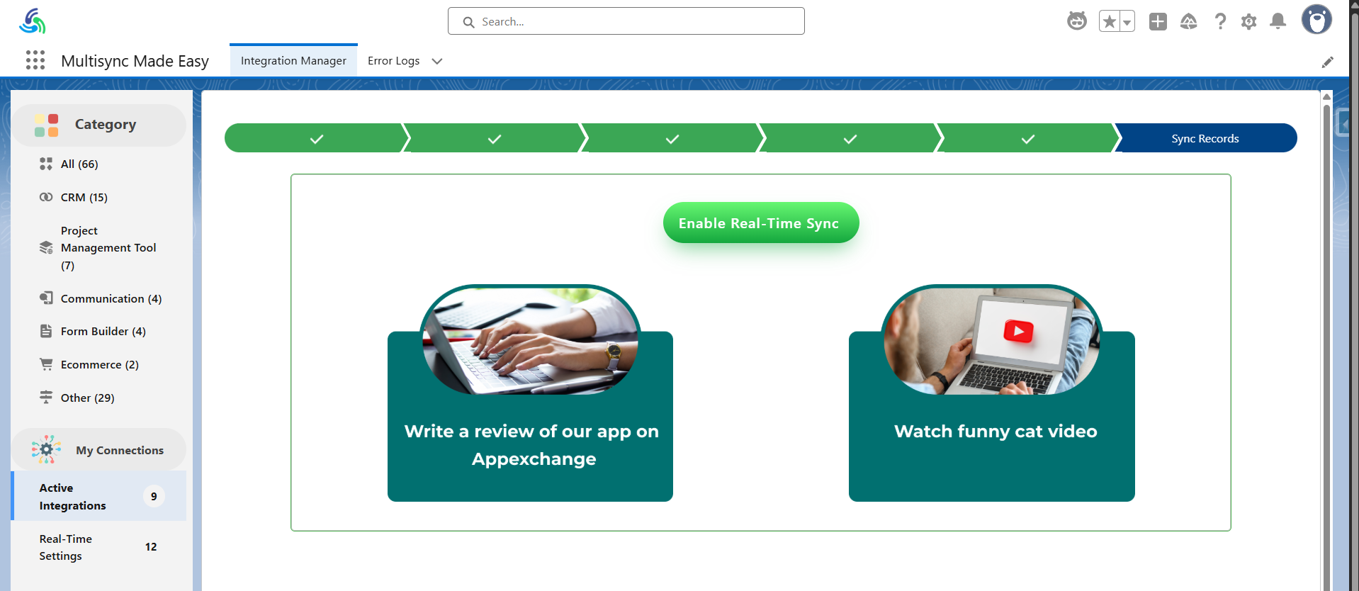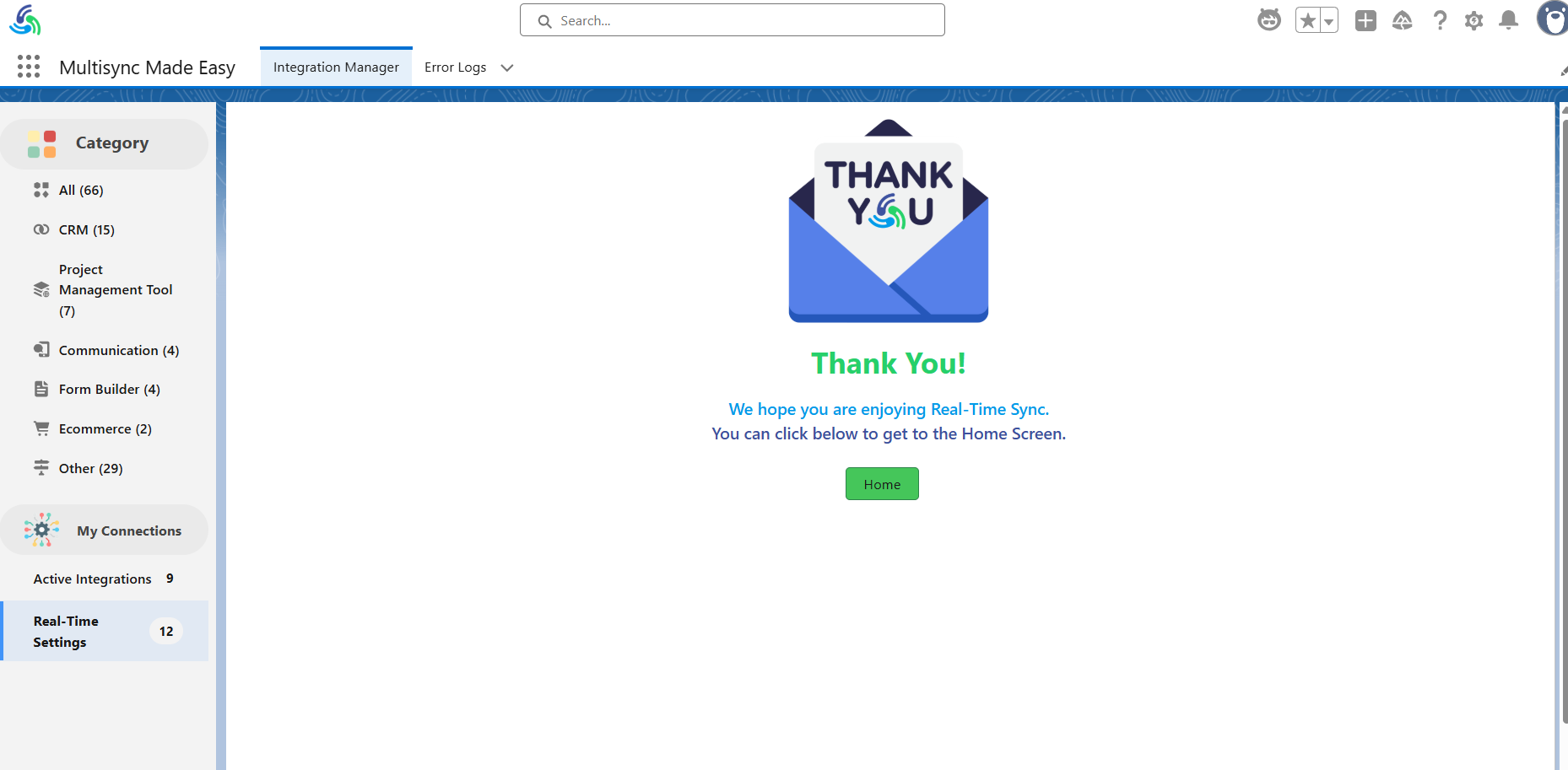 Your real-time synchronization from Salesforce is now set up and ready to use on the selected Object.