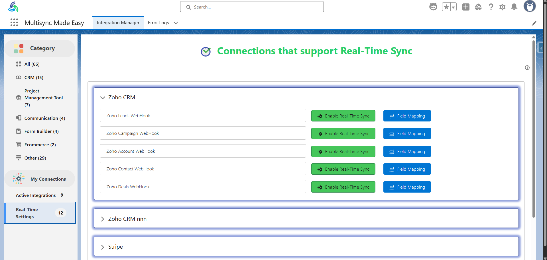 3. Real-Time Settings: This feature enables seamless, real-time synchronization of your data to Salesforce across all integrated platforms.