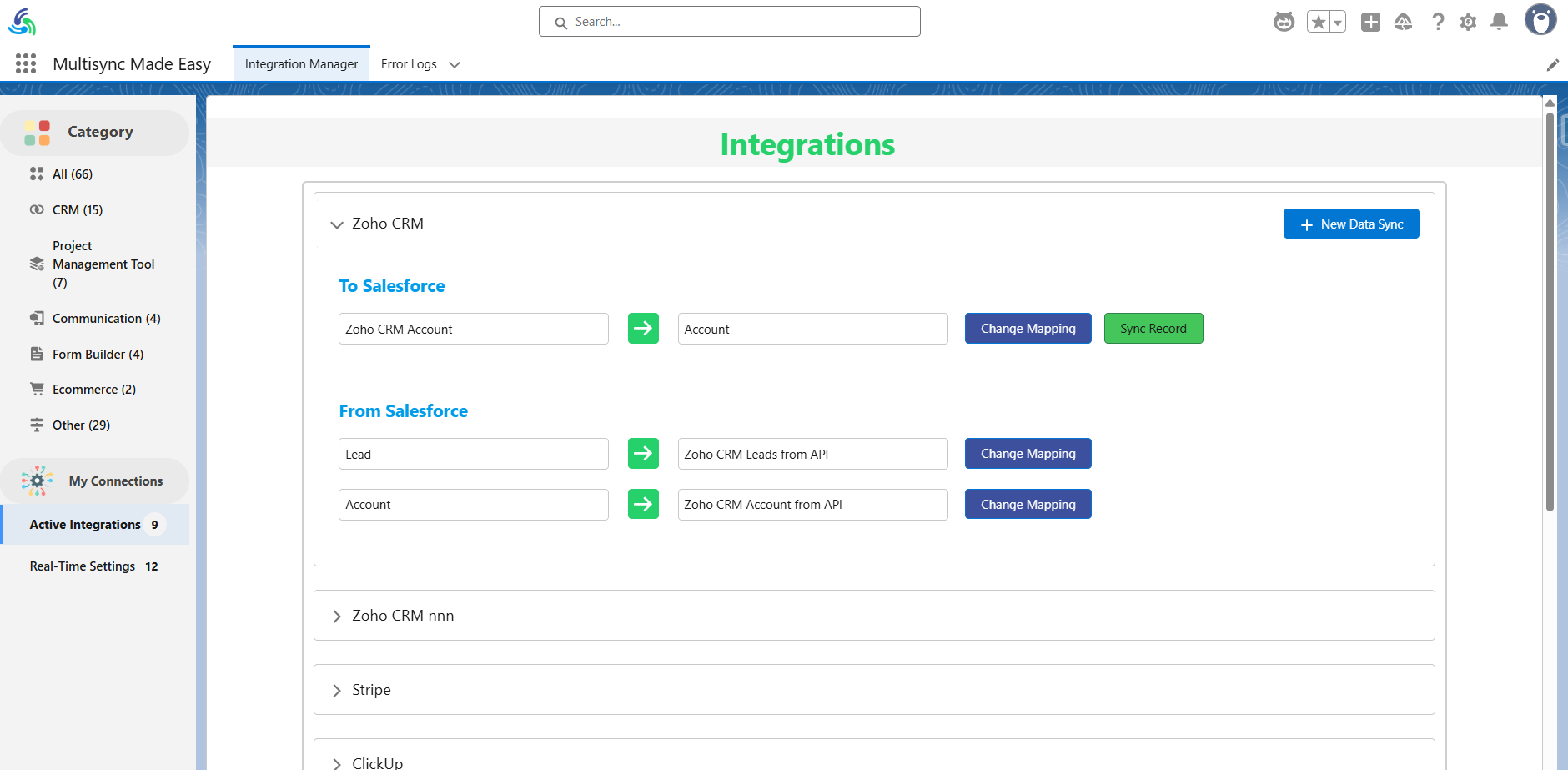 4. Active Integrations: This feature allows you to access all your active integrations with platforms connected to Salesforce.