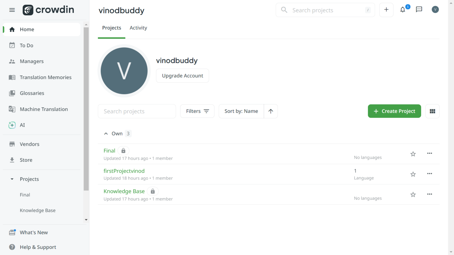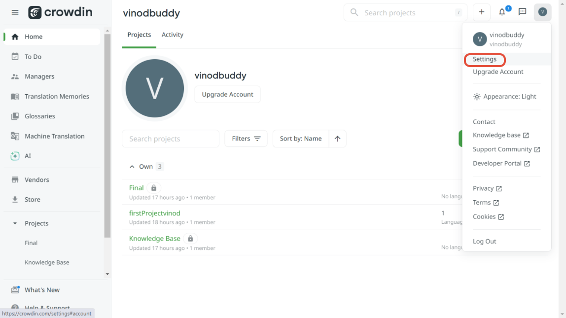 Step 1:- First, sign in to your Crowdin account and If you don’t have one, create a new account here.