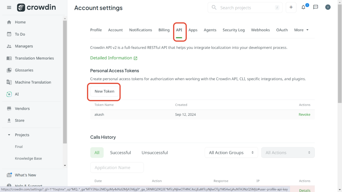 Step 3:- To generate your API key, click on Your Profile Icon > Settings > API > New Token.
