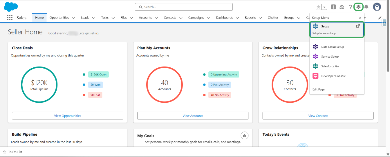 Step 1: Click on the gear icon and then click on ‘Setup’.
