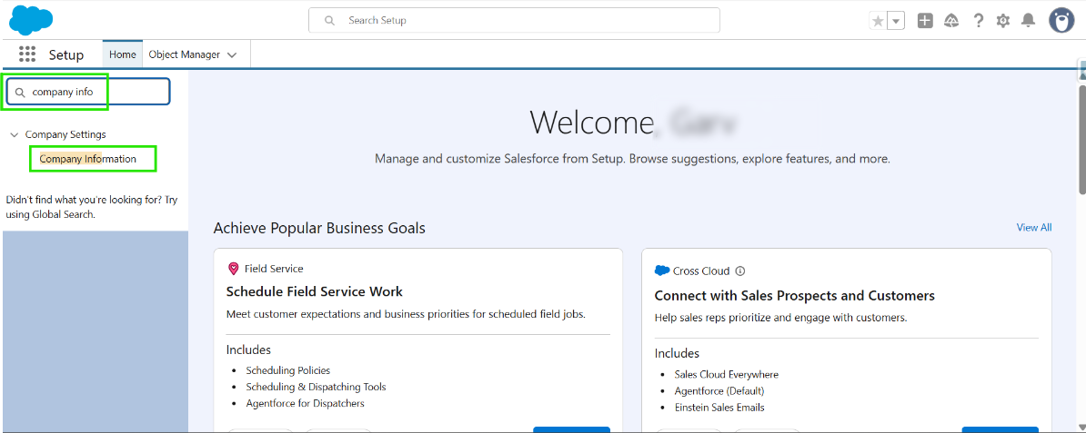 Step 2: Type and search for ‘Company Information’ in the Quick Find Box.