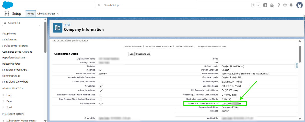 Step 3: Open Company Information and copy the Organization ID to share, starting with '00D'.
